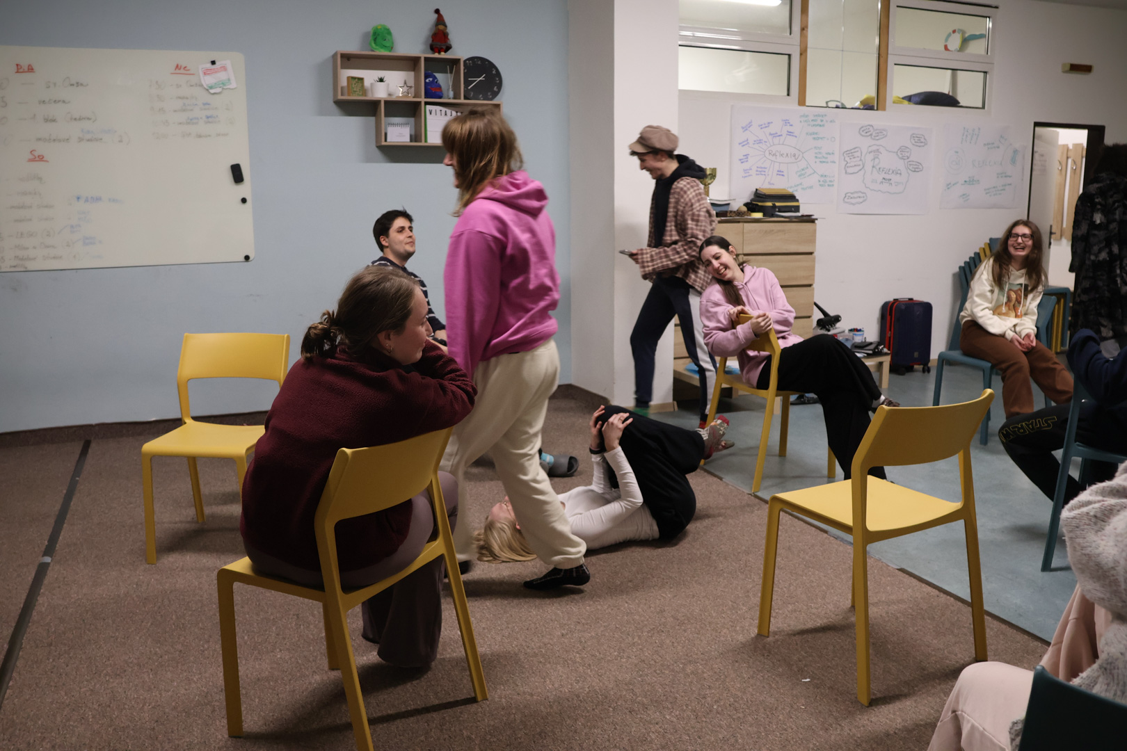 Program bol od začiatku nabitý a hoci teoretických blokov nebolo veľa, o to viac sme sa učili praxou takmer „v teréne“. Účastníci si vyberali konkrétnu hru a zároveň aj ročník základnej či strednej školy, pre ktorý ju pripravovali. Ostatní potom dostali inštrukciu, akú vekovú skupinu budú počas aktivity predstavovať. Vďaka tomu si školitelia mohli realisticky vyskúšať prácu so skupinou, jej dynamiku, reakcie či „typické“ správanie daného veku.
